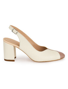 SUPERLATIVE Pantofi dama din piele naturala crem cu toc gros 7 cm 19623