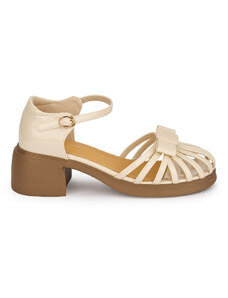 SUPERLATIVE Sandale dama din piele naturala crem cu toc gros 4.5 cm 19601