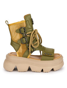 SUPERLATIVE Sandale dama din piele naturala kaki cu talpa inalta 7 cm 19654