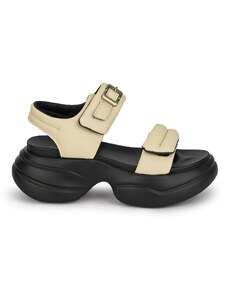 SUPERLATIVE Sandale dama din piele naturala crem cu talpa inalta 6 cm 19779
