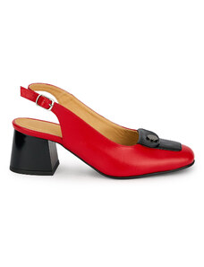 SUPERLATIVE Pantofi dama din piele naturala rosie cu toc gros 5.5 cm 19836