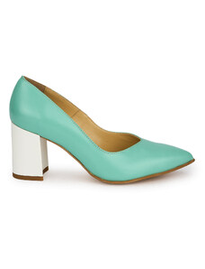 SUPERLATIVE Pantofi dama din piele naturala turcoaz cu toc gros 7 cm 19827