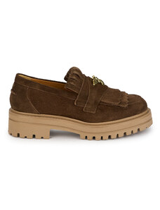 SUPERLATIVE Pantofi dama din piele naturala maro cu accesoriu metalic 19823