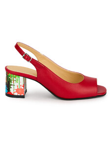 SUPERLATIVE Sandale dama din piele naturala rosie cu toc gros 5.5 cm 19825