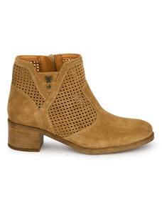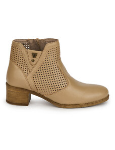 SUPERLATIVE Botine perforate din piele naturala bej cu toc gros 4 cm 19821