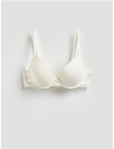 Sinsay - Sutien push-up cu dantelă - crem