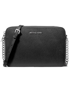 Michael Kors Jet Set Large Saffiano Leather Crossbody Black Silver