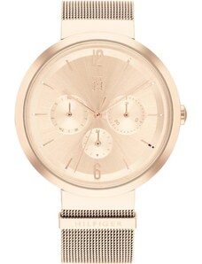 Ceas dama TOMMY HILFIGER Lynn auriu rose 1781590: MATERIAL CARCASA: otel inoxidabil decorata cu cristale Swarovski; MATERIAL CUREA: otel inoxidabil; MATERIAL GEAM: cristal mineral durificat; MECANISM: quartz (cu baterie); PROVENIENTA MECANISM: elvetian; CULOARE CADRAN: argintiu; DISPLAY: analog; DIAMETRU CARCASA: 3.2 cm; GROSIME CARCASA: 7 mm; LUNGIME TOTALA: 19 cm; LATIME CUREA: 18 mm; TIP CUREA: bratara. REZISTENTA LA APA: 3 ATM; FUNCTII: ora, minute, secunde; CUTIE CADOU: da; GARANTIE: 24 luni. JERMYN'S garanteaza ca ceasul de dama TOMMY HILFIGER Lynn auriu rose 1781590 este un ceas original de calitate premium, ce respecta descrierea si imaginile de prezentare.