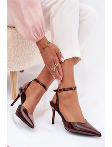 Boto Pantofi cu toc deschis din piele lăcuită Laretta ciocolatiu