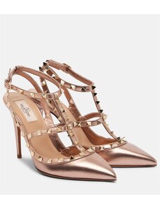 Valentino Garavani Rockstud 100 metallic leather pumps