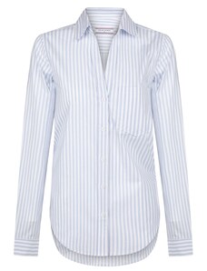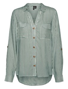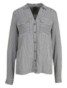 Modelul bluzei: Bluză clasică; Design: Manșetă cu 1 nasture, Șir de nasturi, Pliu spate, Buzunar la piept, Mâneci suflecate; Tip de închidere: Închidere cu nasturi; Material: Viscoză; Imprimeu: Cu dungi; Guler de cămașă: Guler Kent; Detalii: Pliuri; Detalii: Imprimat în totalitate, Material răcoros; Croi: Croi larg; Lungime mâneci: Mâncecă lungă; Lungime: Lungime normală